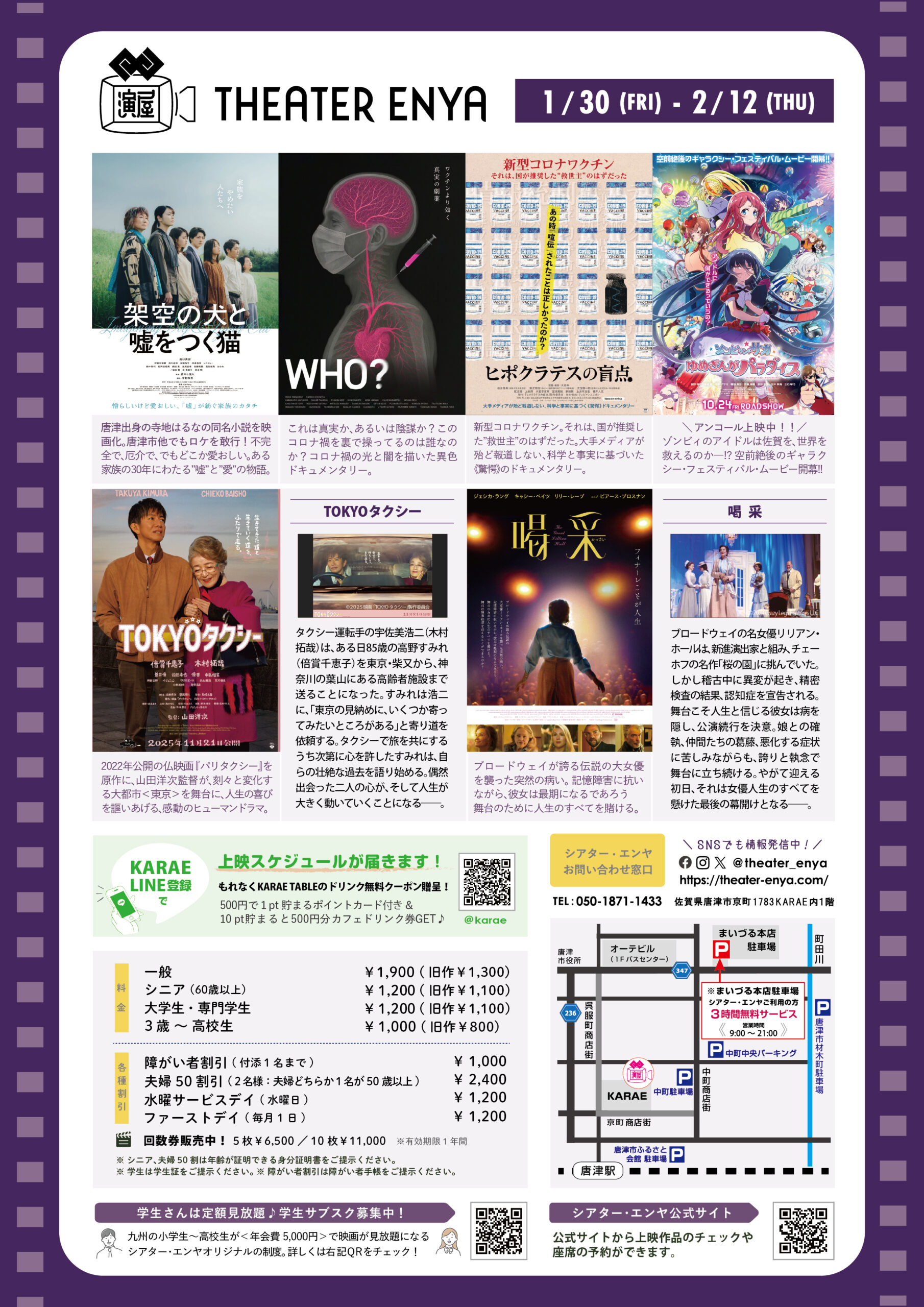 KARAE1階にある映画館シアター・エンヤより、1/30~2/12の上映スケジュールのお知らせです。