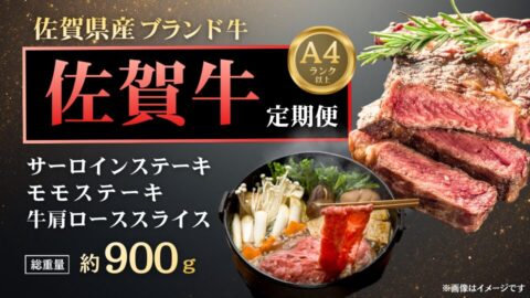 【定期便セット】A4ランク以上佐賀牛セレクション(サーロイン200g×2P、モモステーキ100g×2P、肩ローススライス300g)